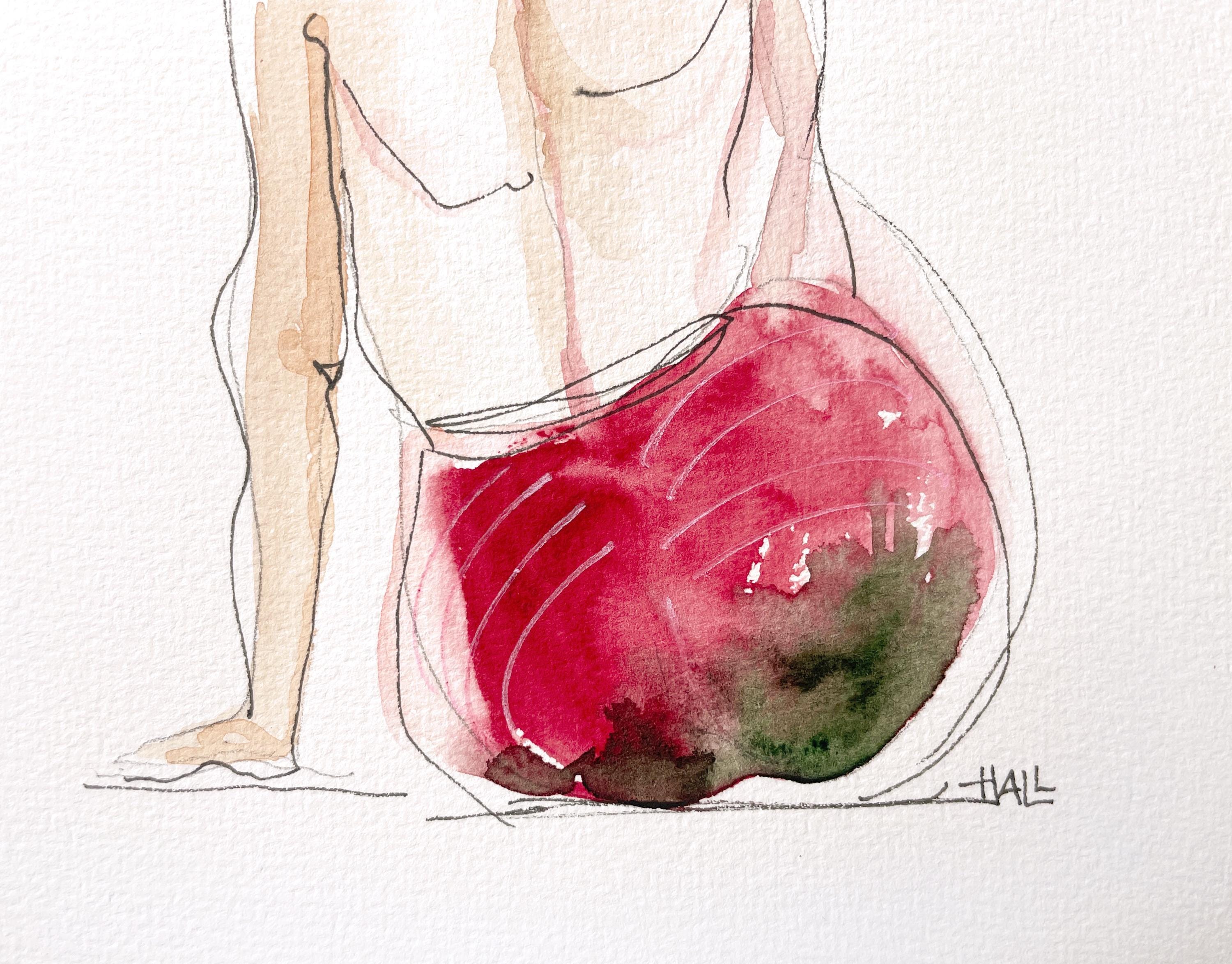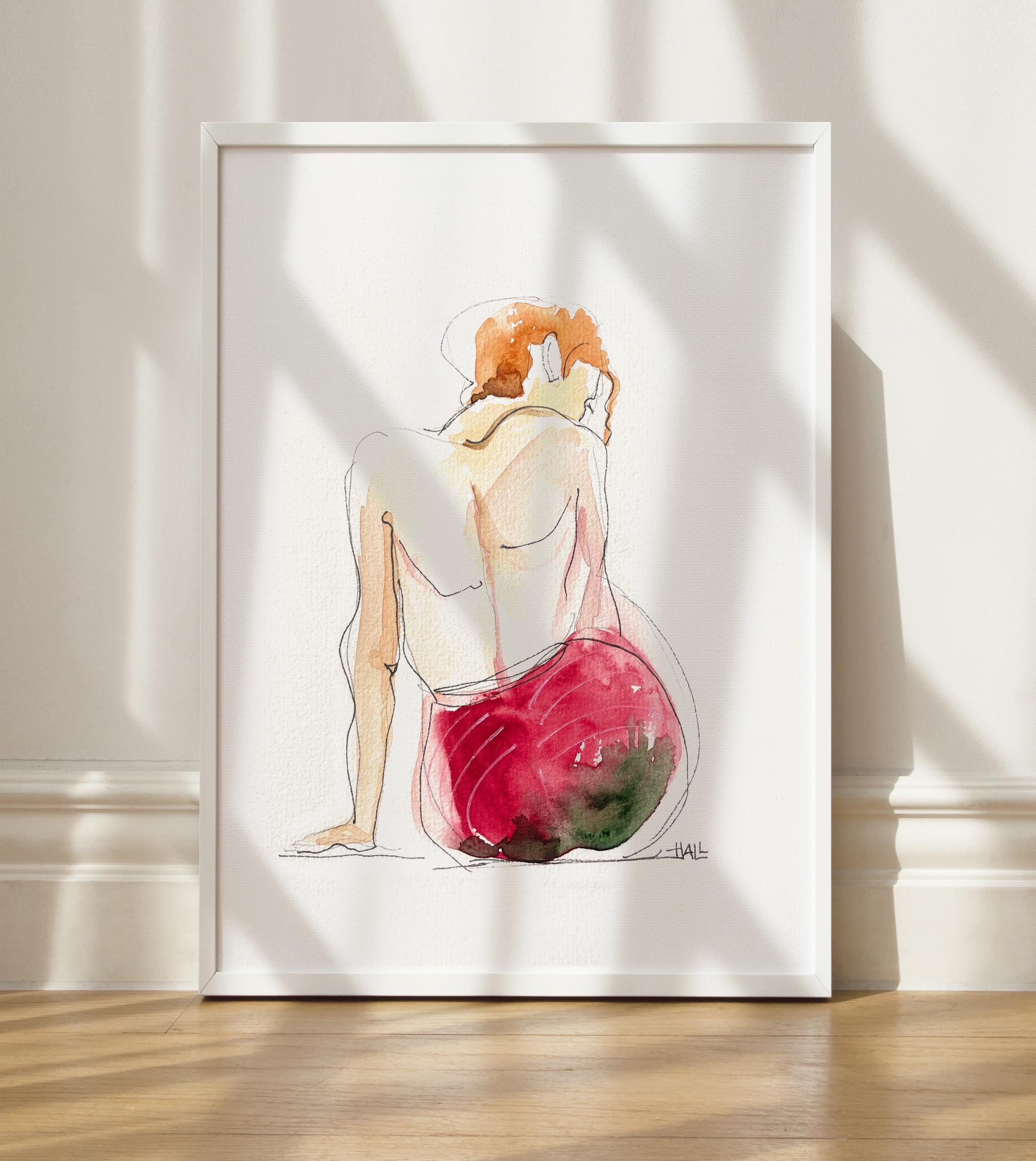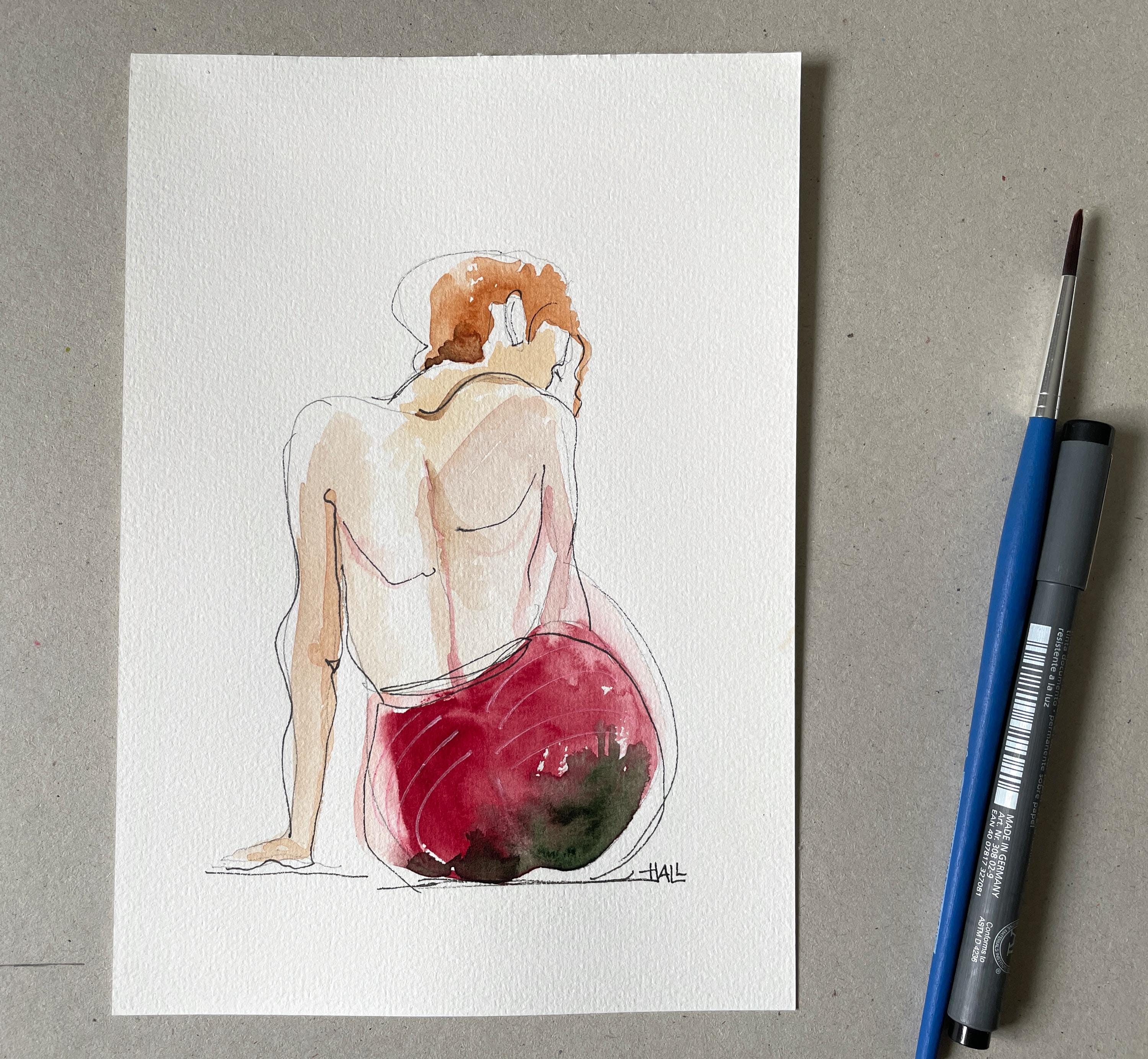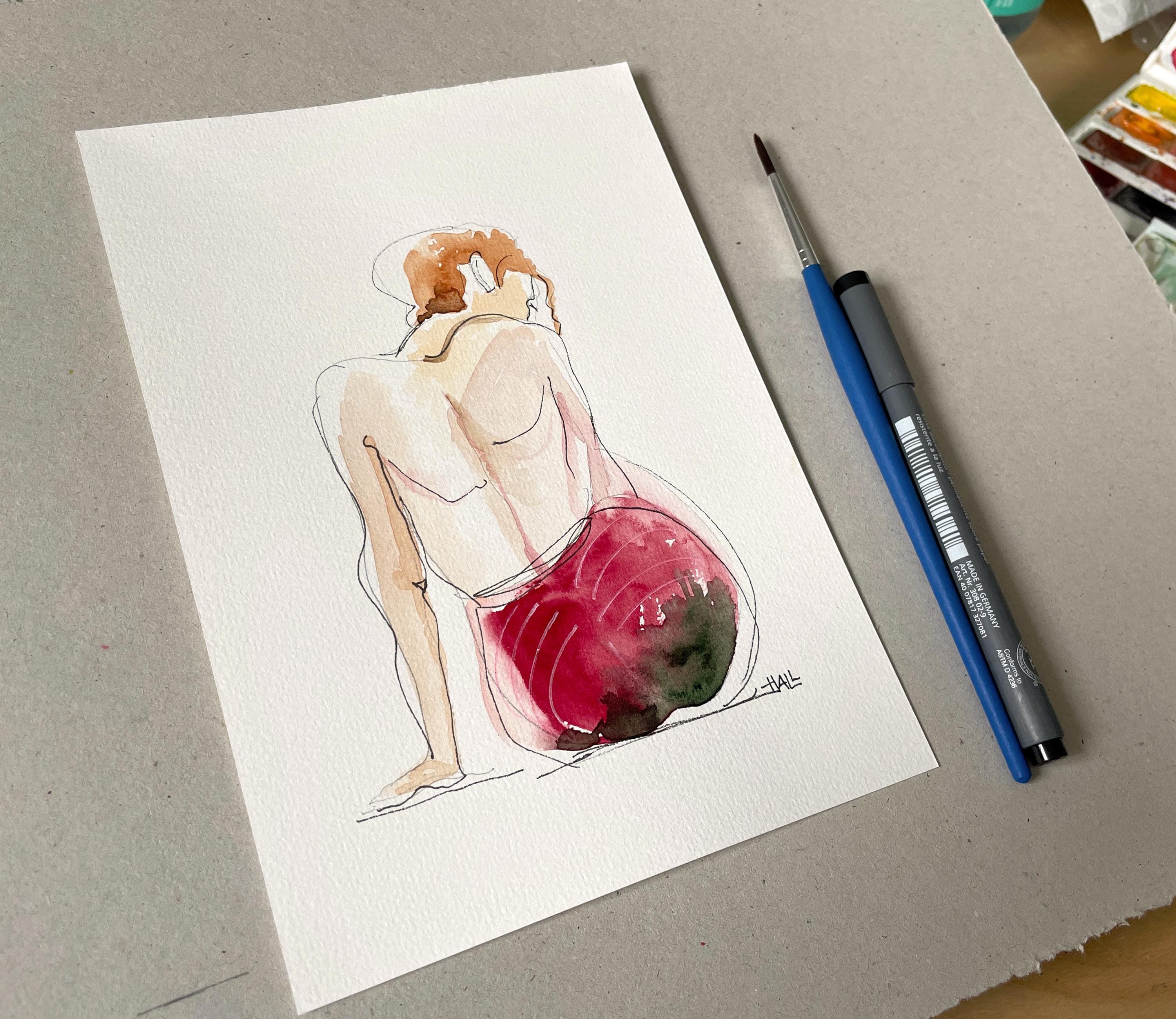 'Sensual view from the back' – Original watercolor drawing A5.