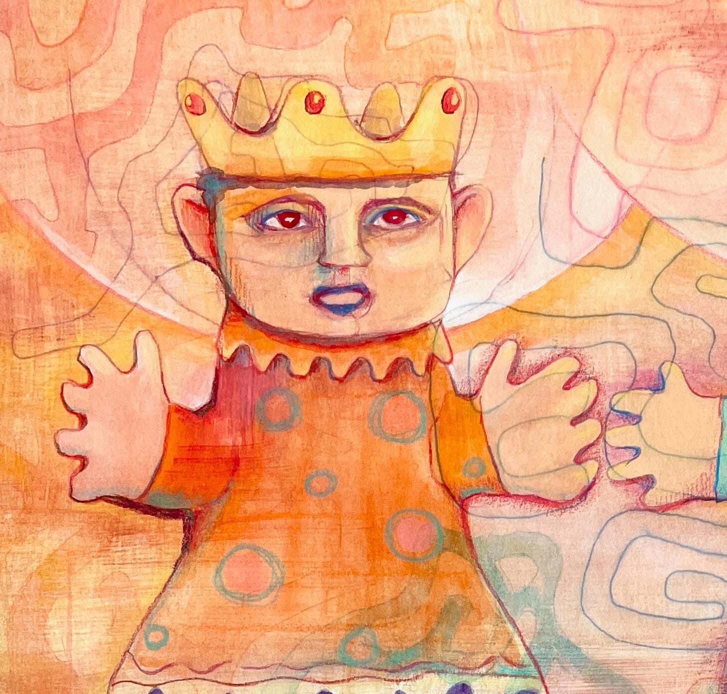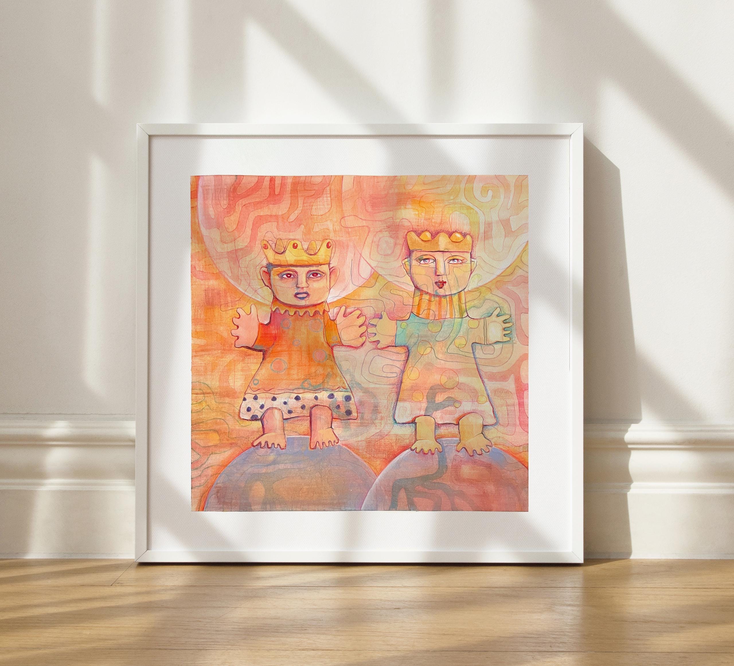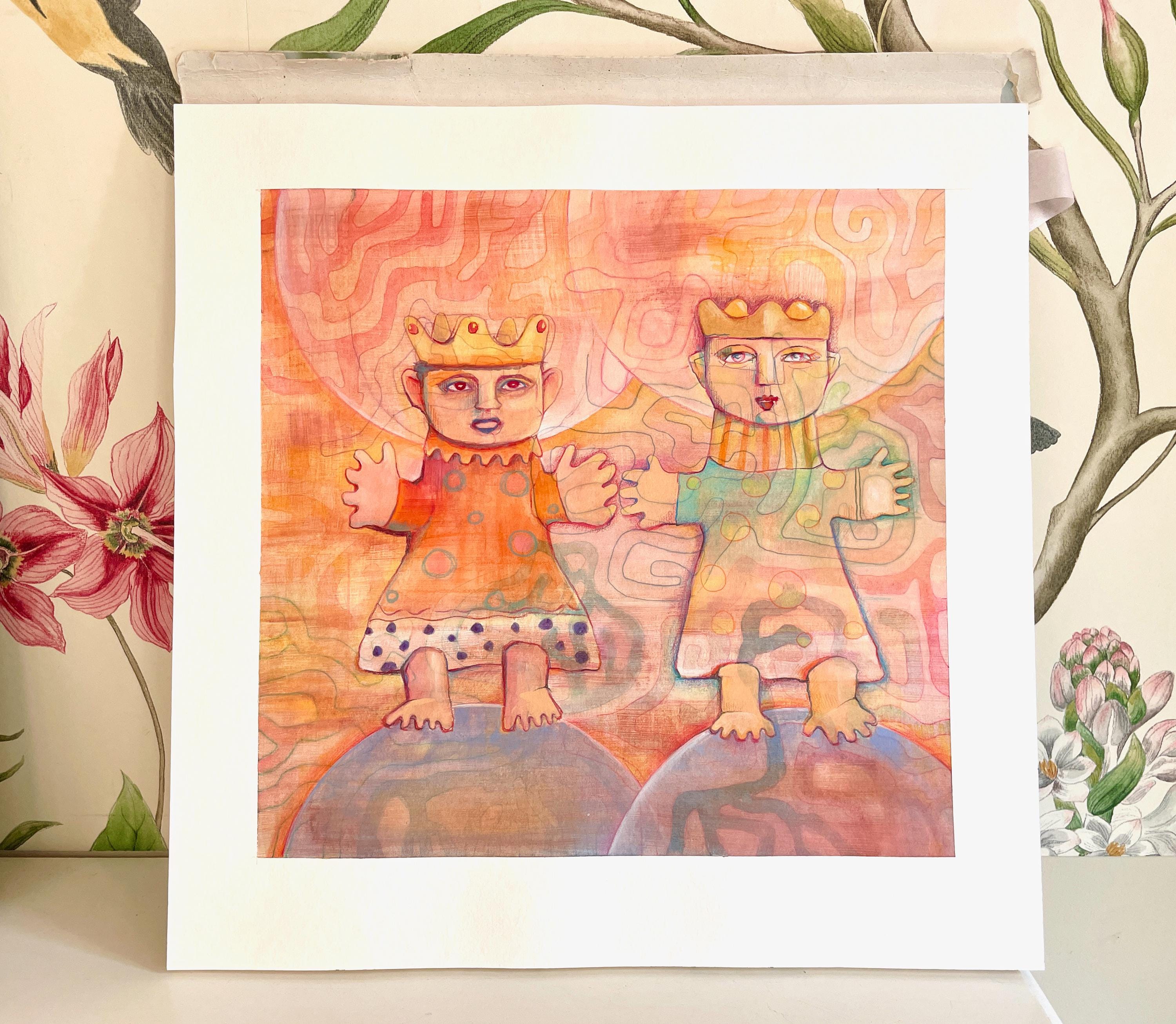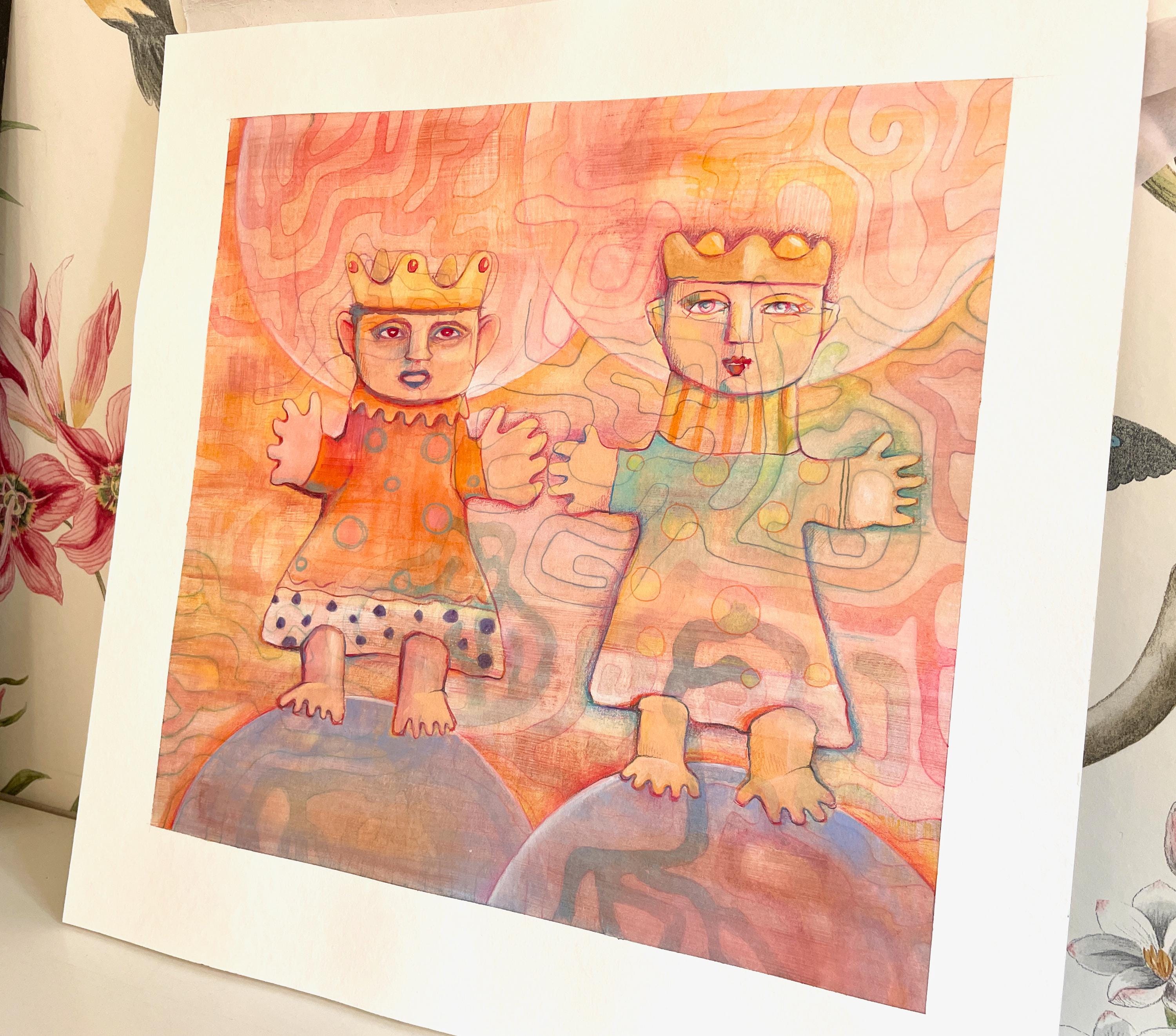 A unique watercolor painting created in layers. "Two Royal Children" – a song that has emotionally captivated me my entire life. My sister and I learned this song from our mother when we were little, back in the 1960s. Now, in my old age, I paint this watercolor, which emotionally captures the feeling that this German ballad has always connected me to.