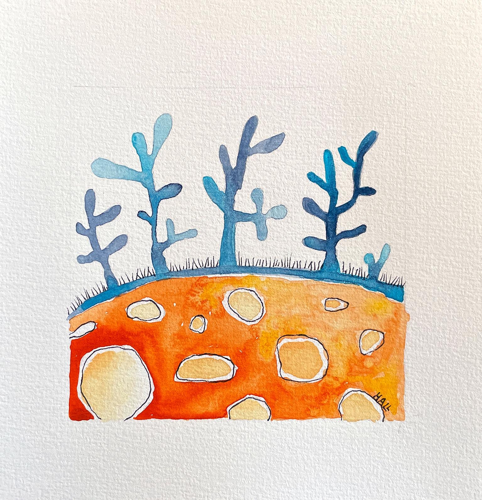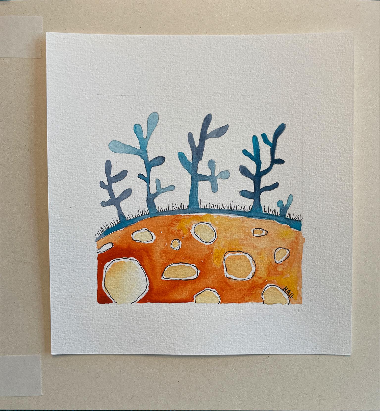 Small original painting "Piece of Earth" by Kriemhild Strobel-Hall, 2025