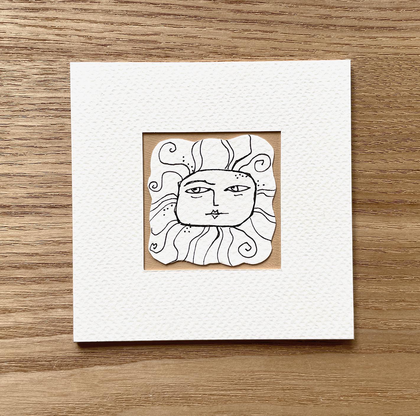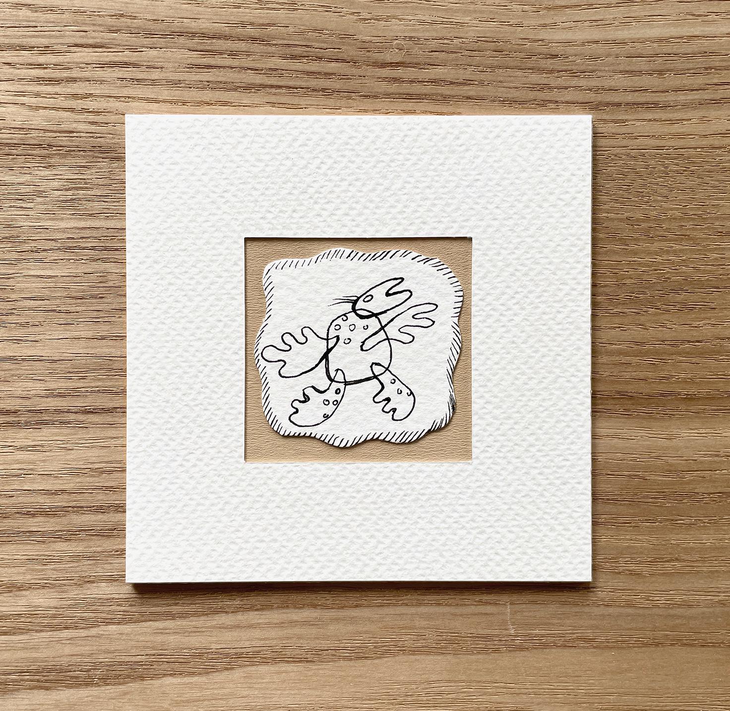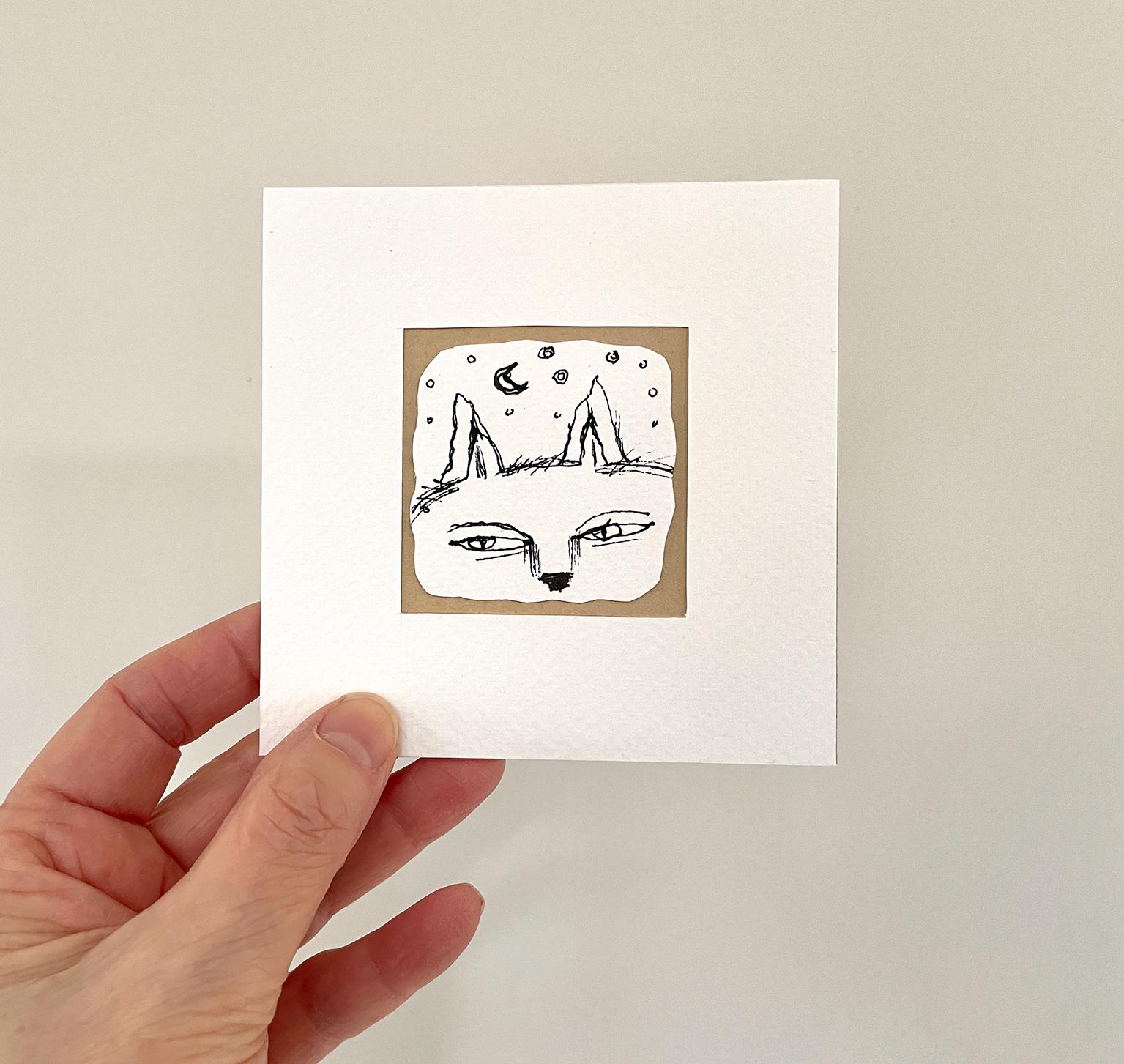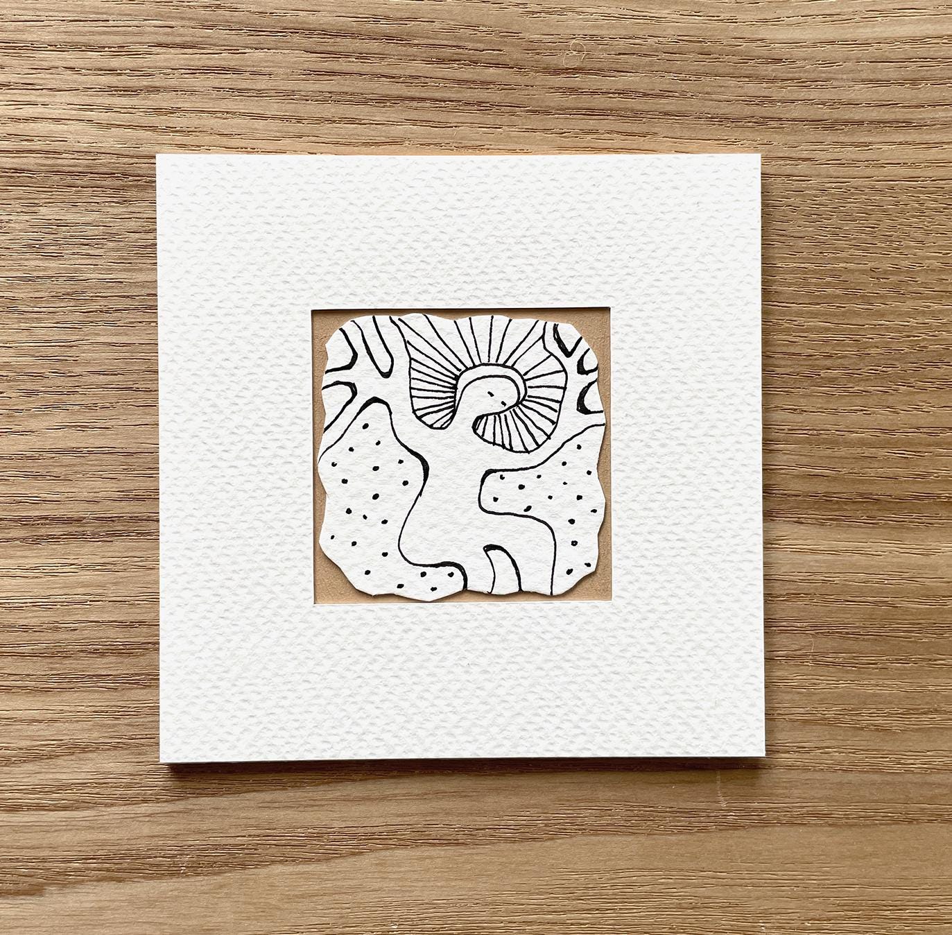 Original miniature ink drawing with homemade passe-partout, 10 x 10 cm, for collecting or giving as a gift.