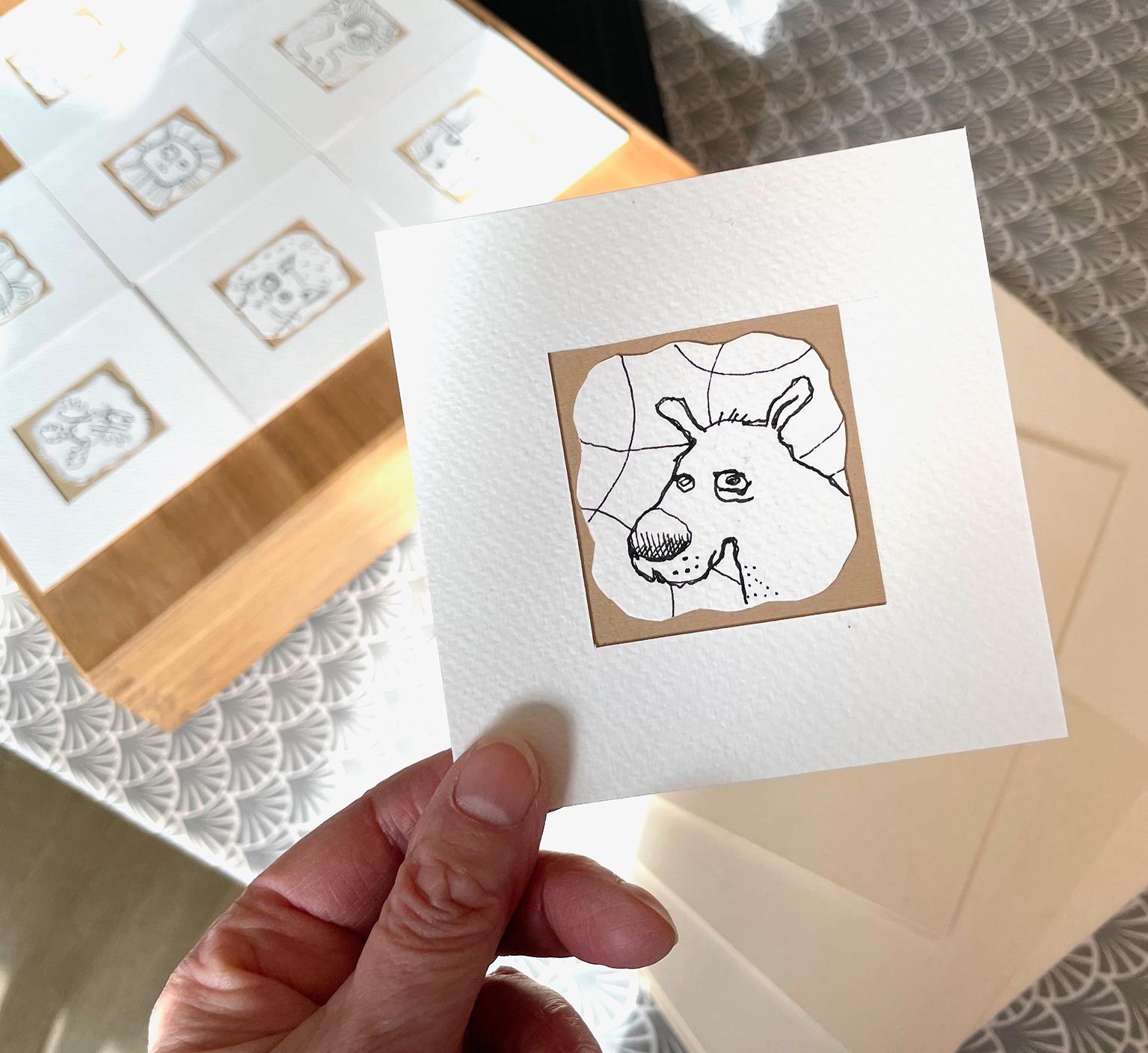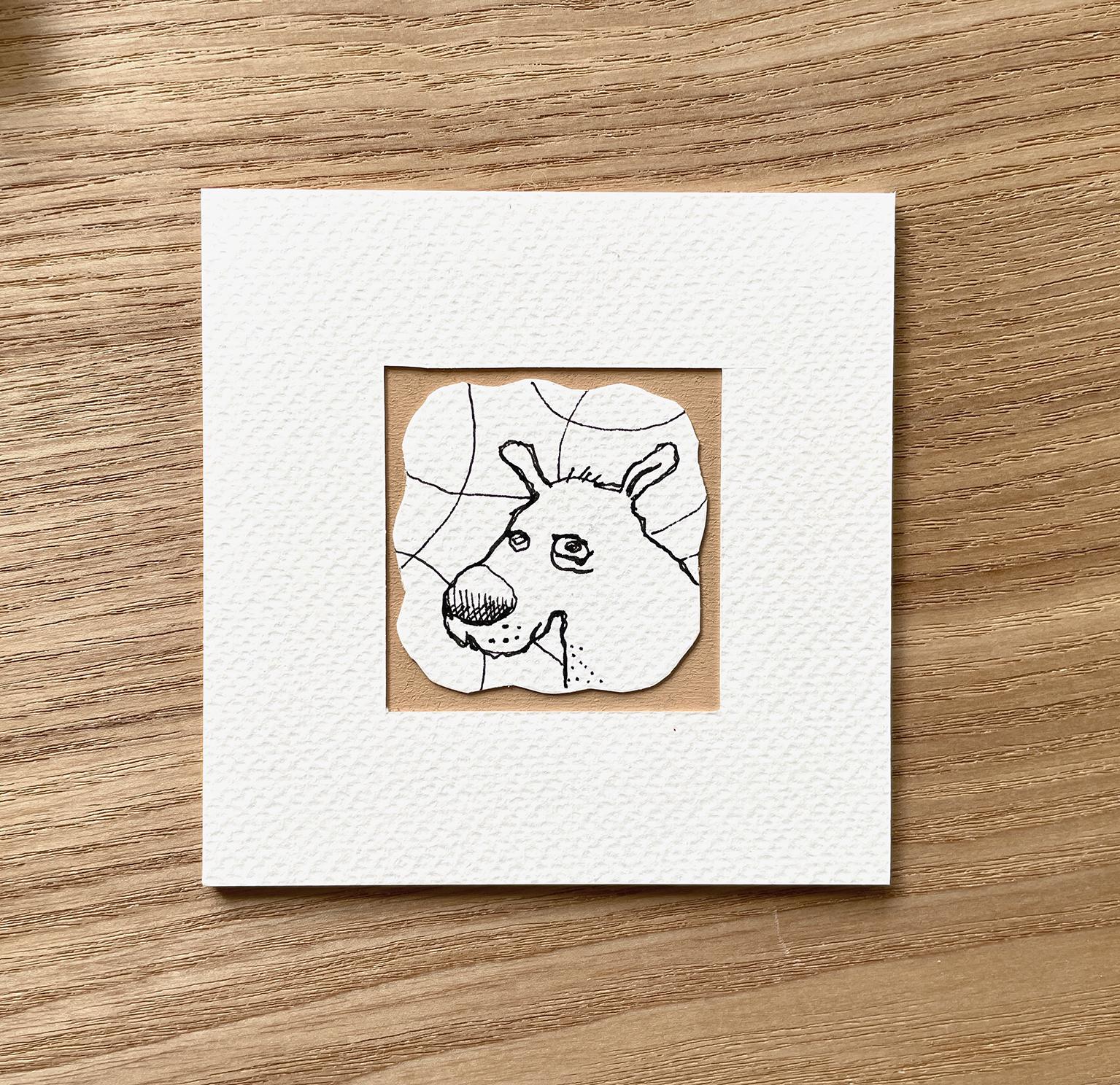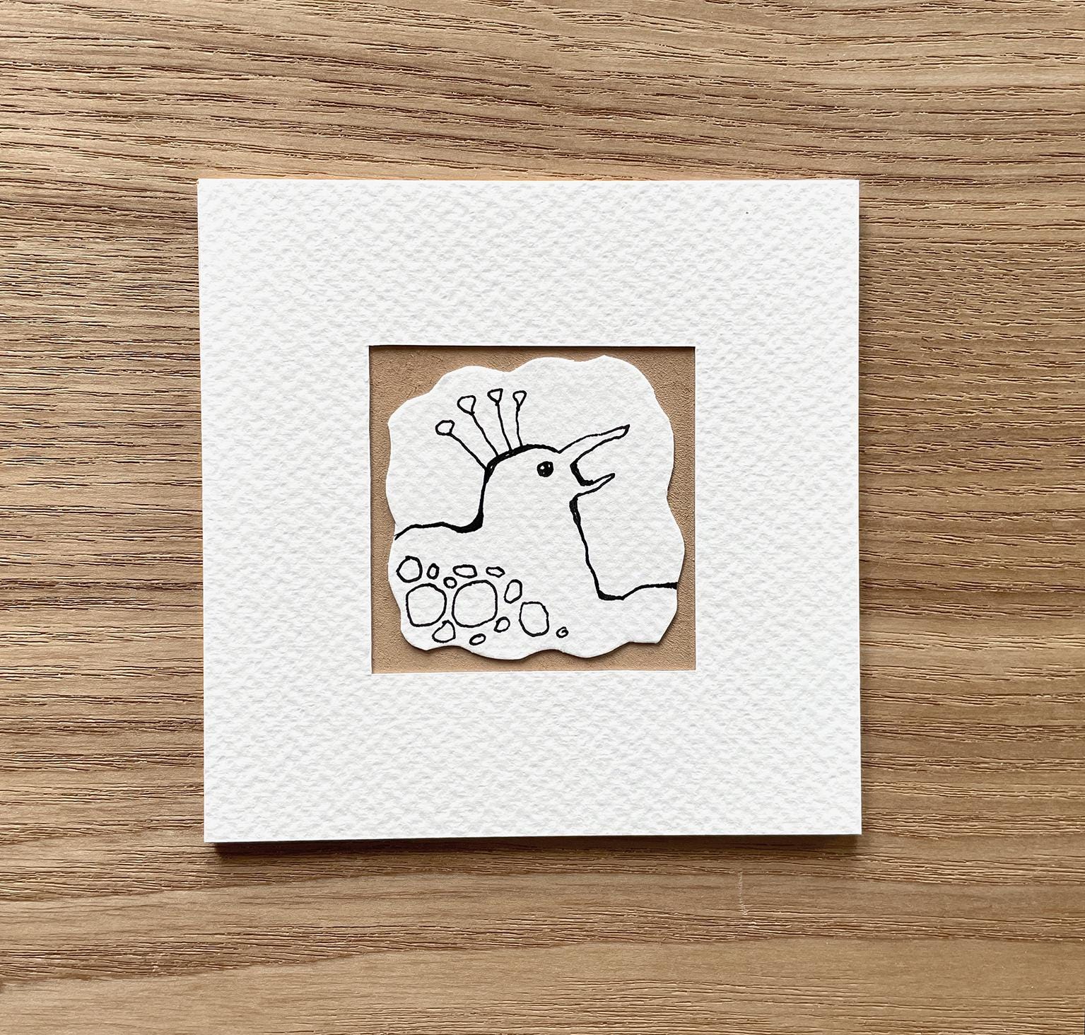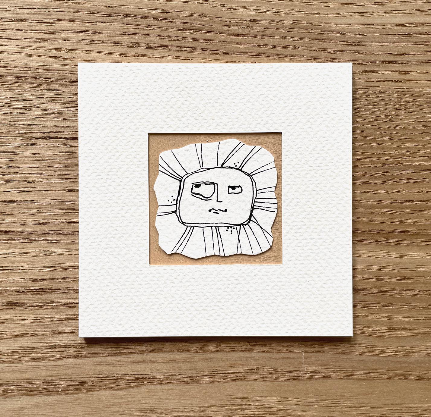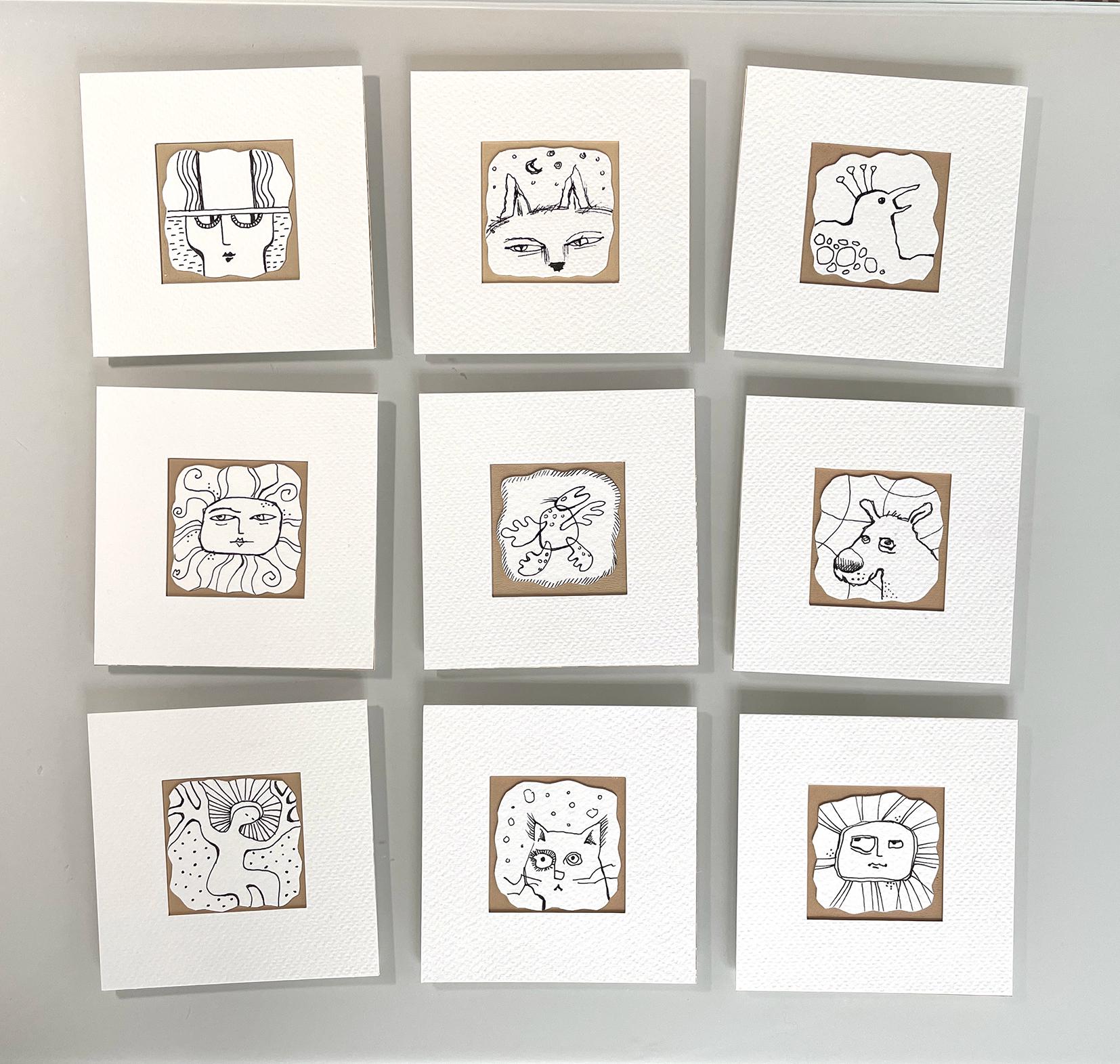 Original miniature ink drawing with homemade passe-partout, 10 x 10 cm, for collecting or giving as a gift.