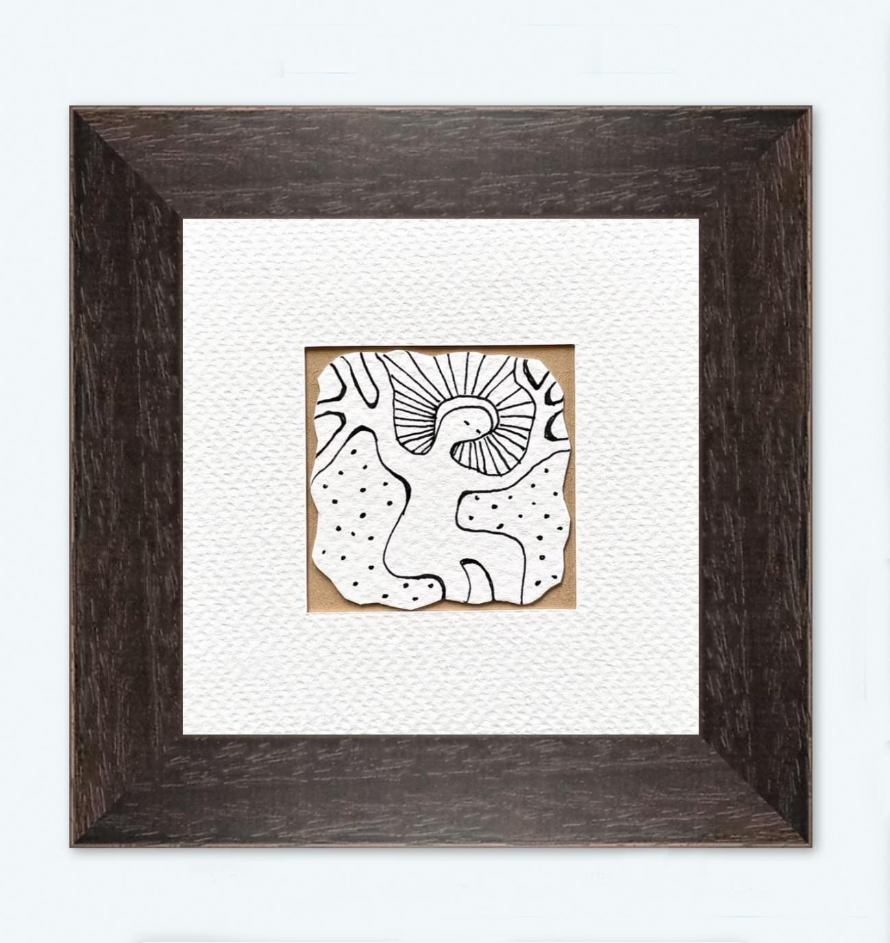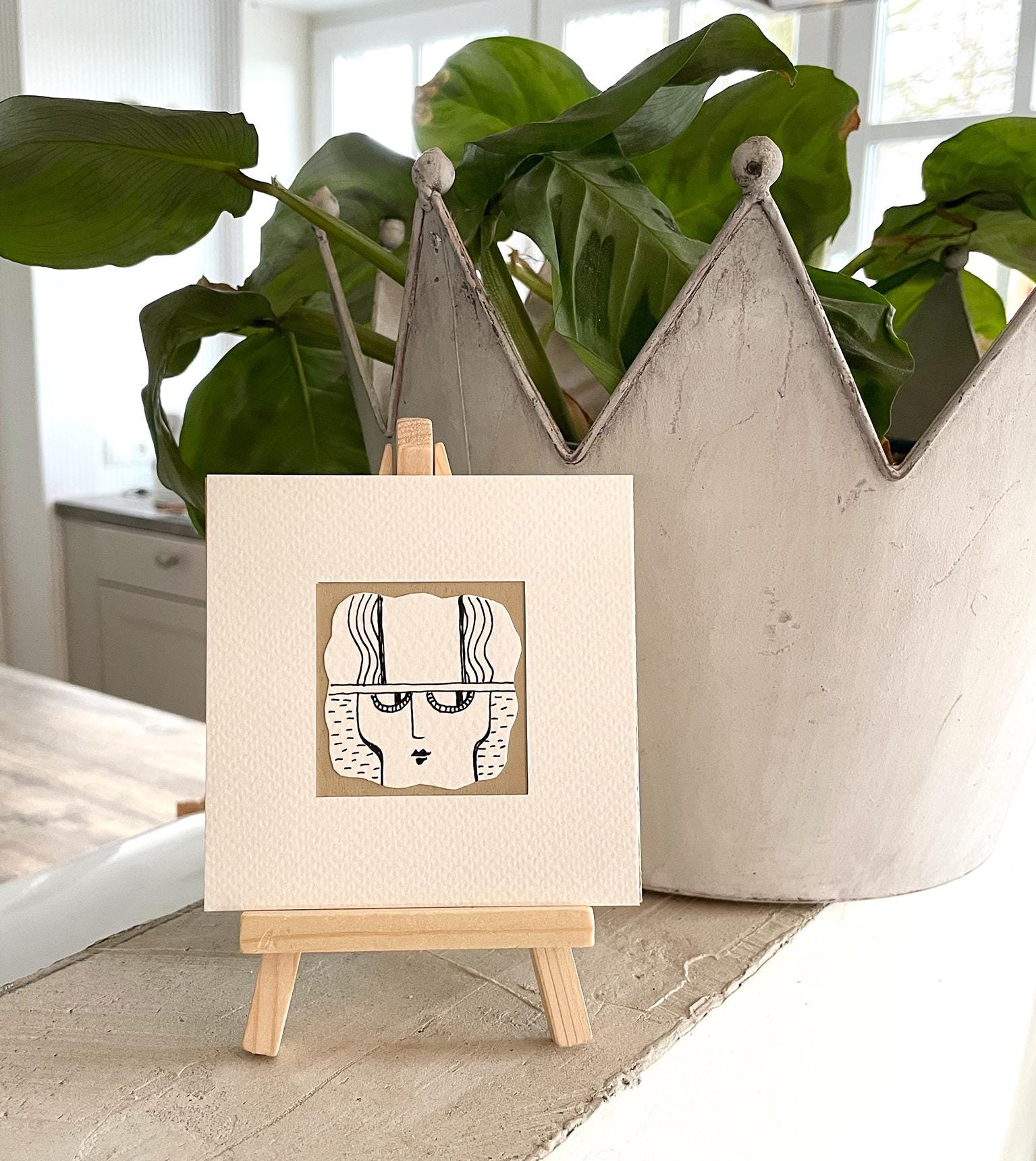 Perhaps you'd like to frame the small artwork and hang it on the wall, or perhaps display it unframed on a small wooden shelf? Many options are possible. The ideal frame size would be 10 x 10 cm.