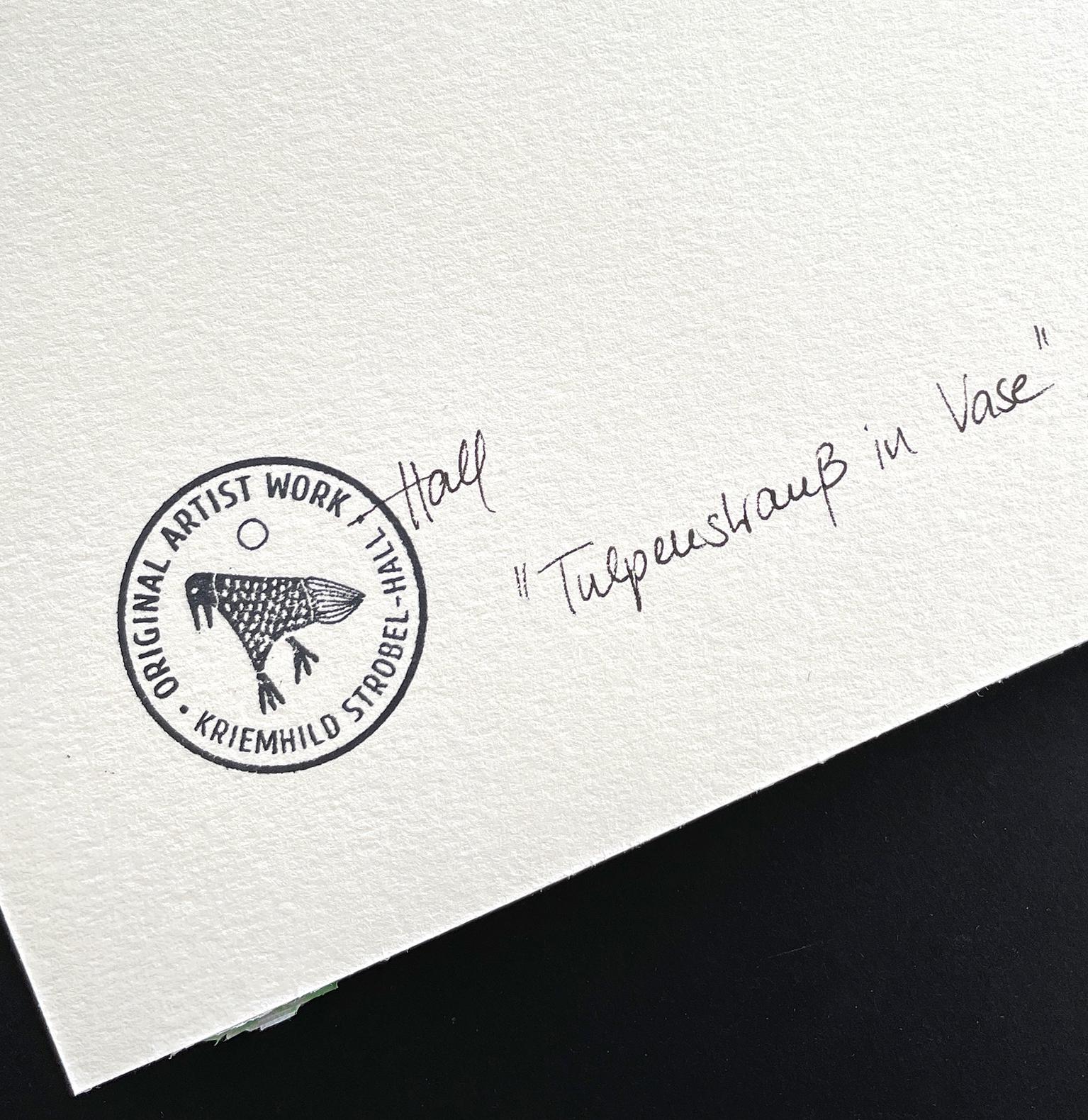 Welcome to my shop! To mark the beginning of spring, I am presenting this cheerful and colorful painting—a striking original work that I painted in 2022. I was inspired by a bouquet of tulips in a vase on my table. The idea was not to paint realistically, but to depict the flowers as they could look, full of vitality and magic.