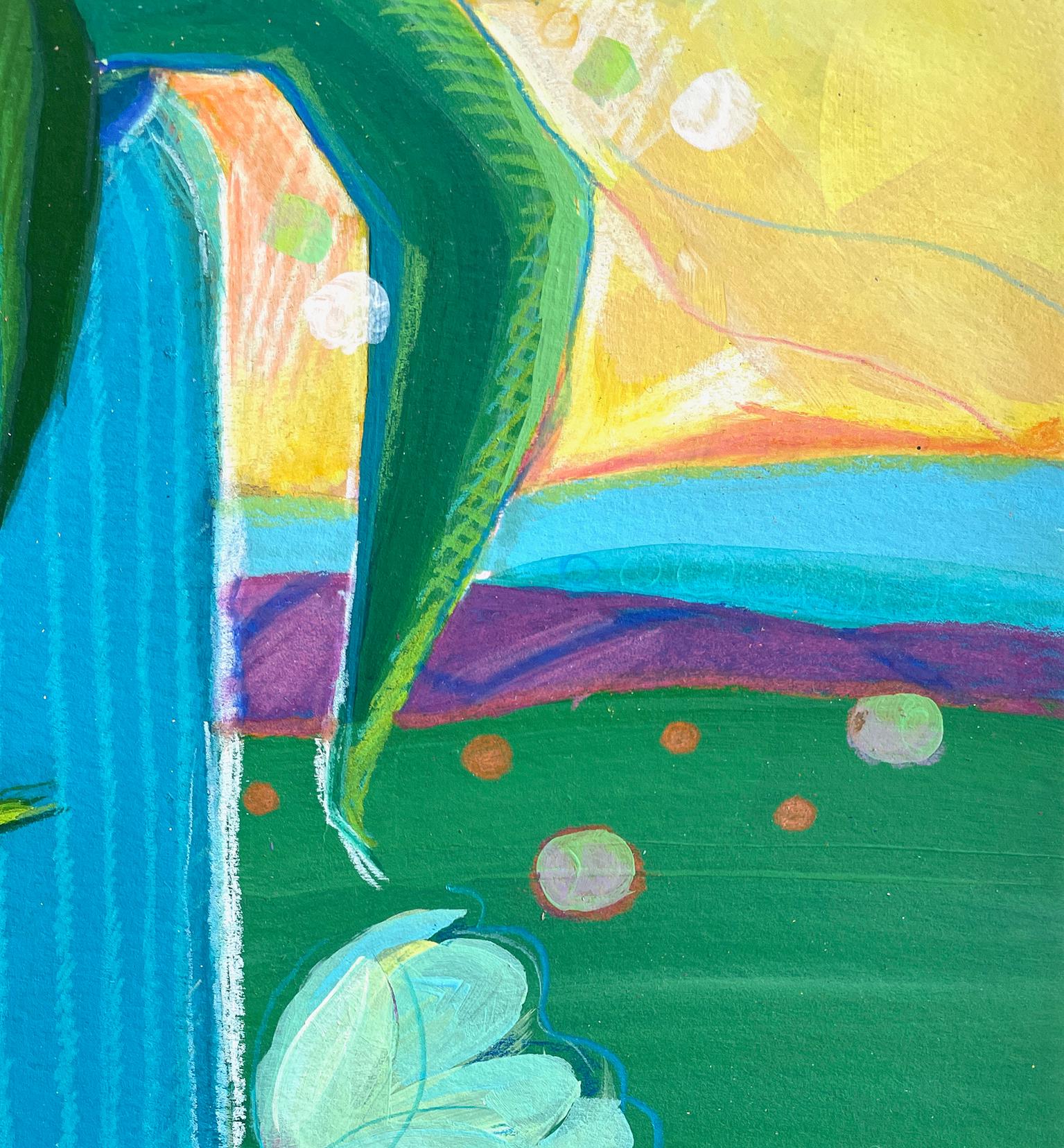 For me, this painting represents the anticipation of spring, when the days get brighter, warm air sweeps across the meadows, birds sing in the morning, and colorful flowers lift our spirits. A welcoming relief after a dreary winter in the northern hemisphere.